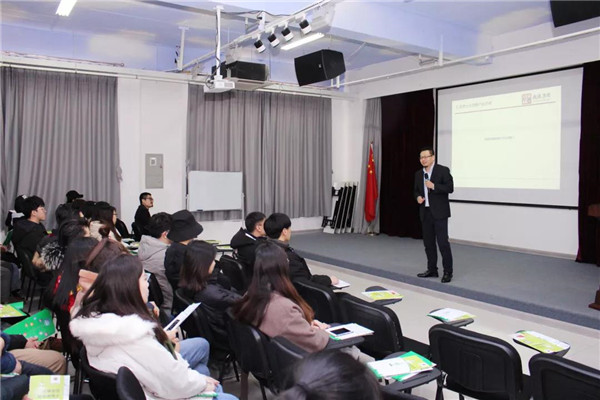 乾港集團(tuán)美博士環(huán)保總經(jīng)理常凱??偅瑸樵谧膸熒鷤兘庾x了大綠色環(huán)保家居、室內(nèi)污染物治理技術(shù)、方式方法及產(chǎn)品介紹等相關(guān)空凈治理知識(shí);秦皇島新型材料科技有限公司總經(jīng)理李勇劍李總則為在座師生帶來(lái)了綠色材料研發(fā)及生產(chǎn)使用工藝等內(nèi)墻環(huán)保壁材方面的知識(shí)。